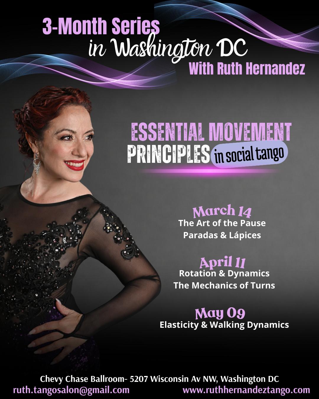 Classes specialized in the principles of social tango with emphasis in concepts like rotation, the mechanics of turns, elasticity and walking.